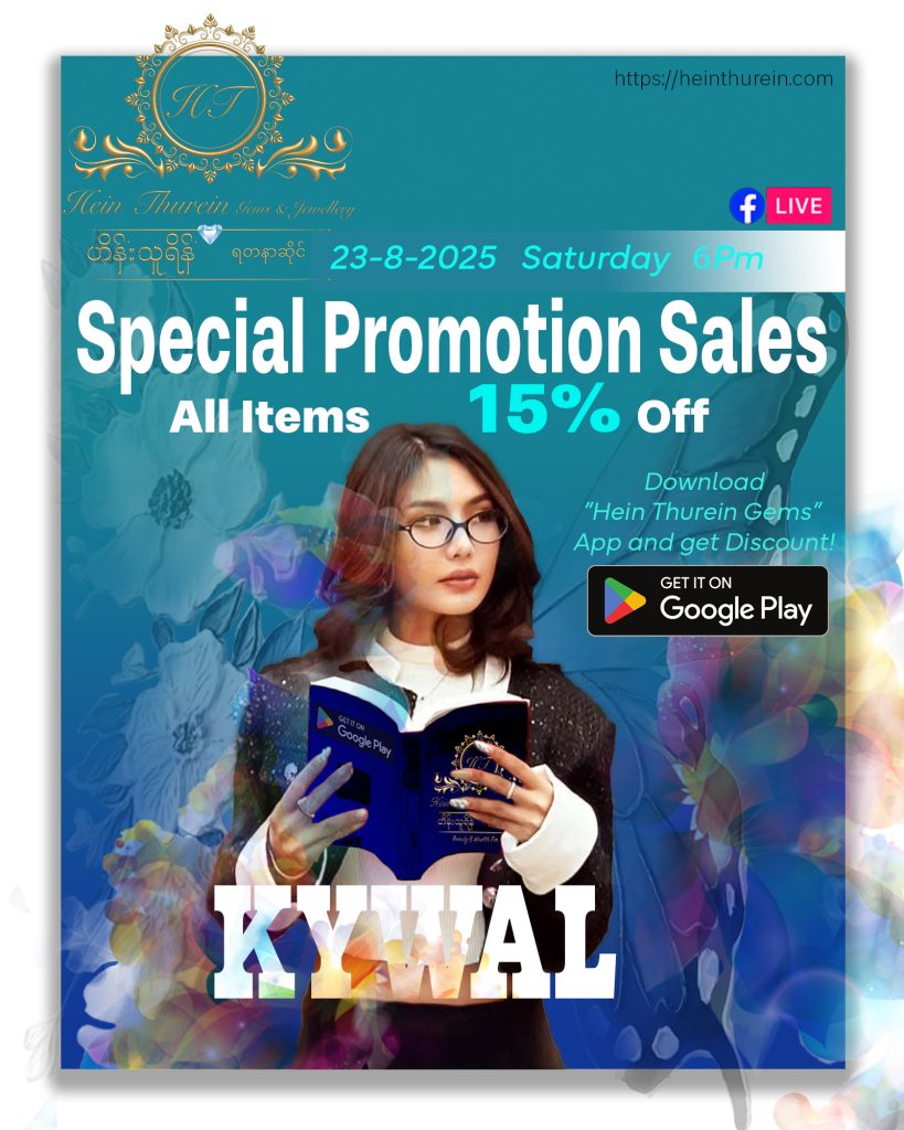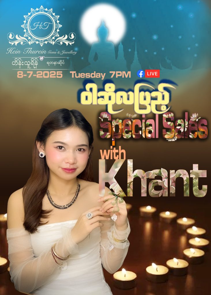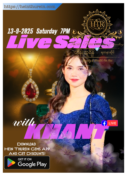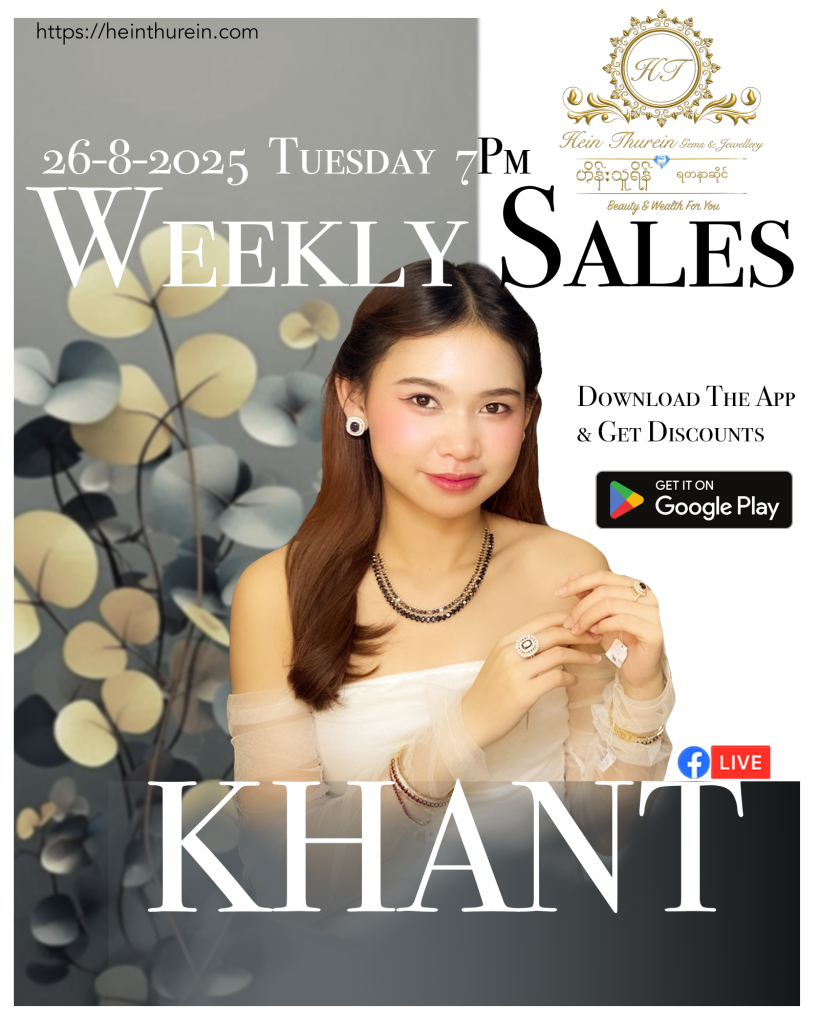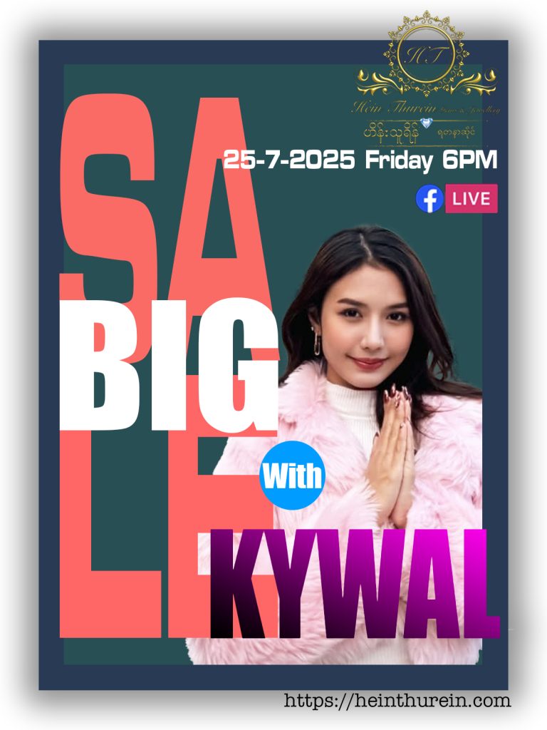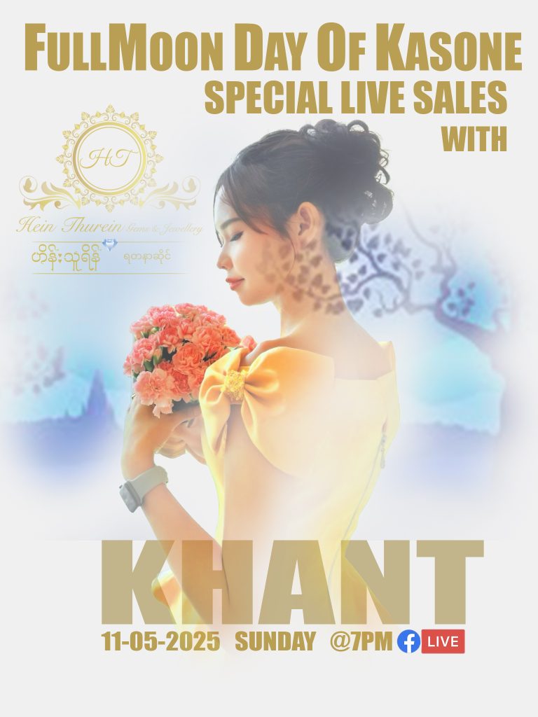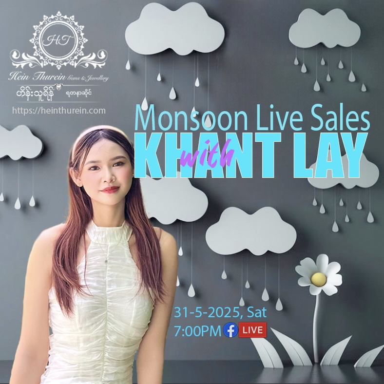 ပုံမှန်ပြုလုပ်နေကျအတိုင်း သမီး ခန့်လေး နှင့် မနက်ဖြန် စနေနေ့ ၂၂.၆.၂၀၂၄ ရက်နေ့ ည ၇:၀၀ တွင် Hein Thurein Gems & Jewellery Page, နှင့် Khant Lay – ခန့်လေးငယ် Page တို့တွင် Live လွှင့် ရောင်းချပေးပါမည်ရှင်….. 😍🥰